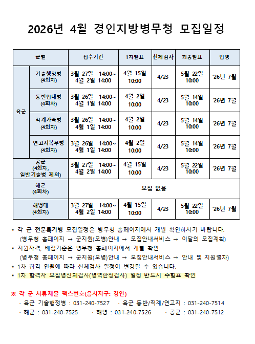 2026년 4월 경인지방병무청 모집일정