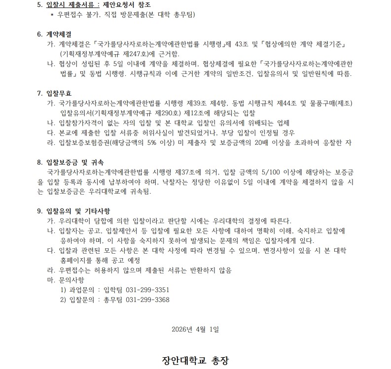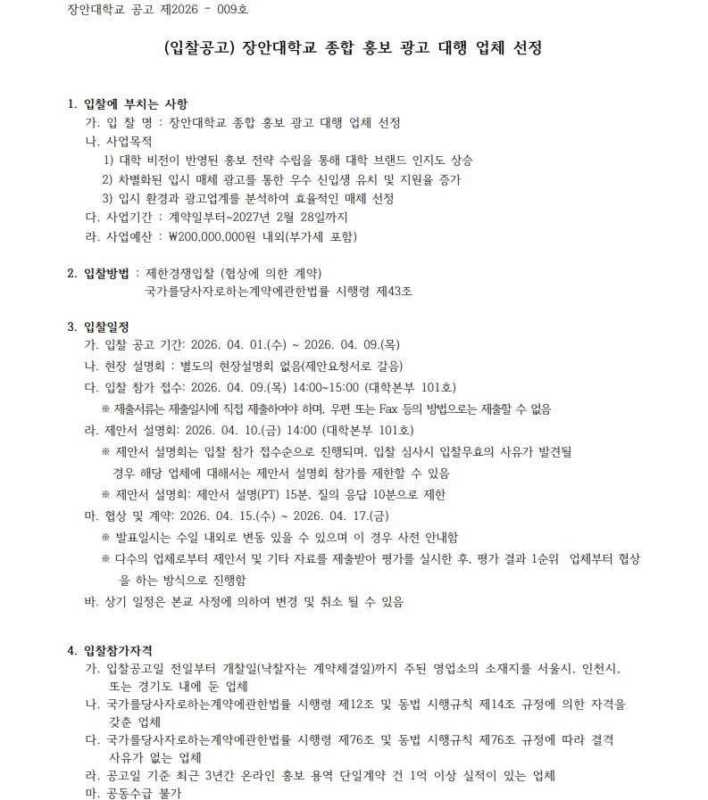 (입찰공고) 장안대학교 종합 홍보 광고 대행 업체 선정